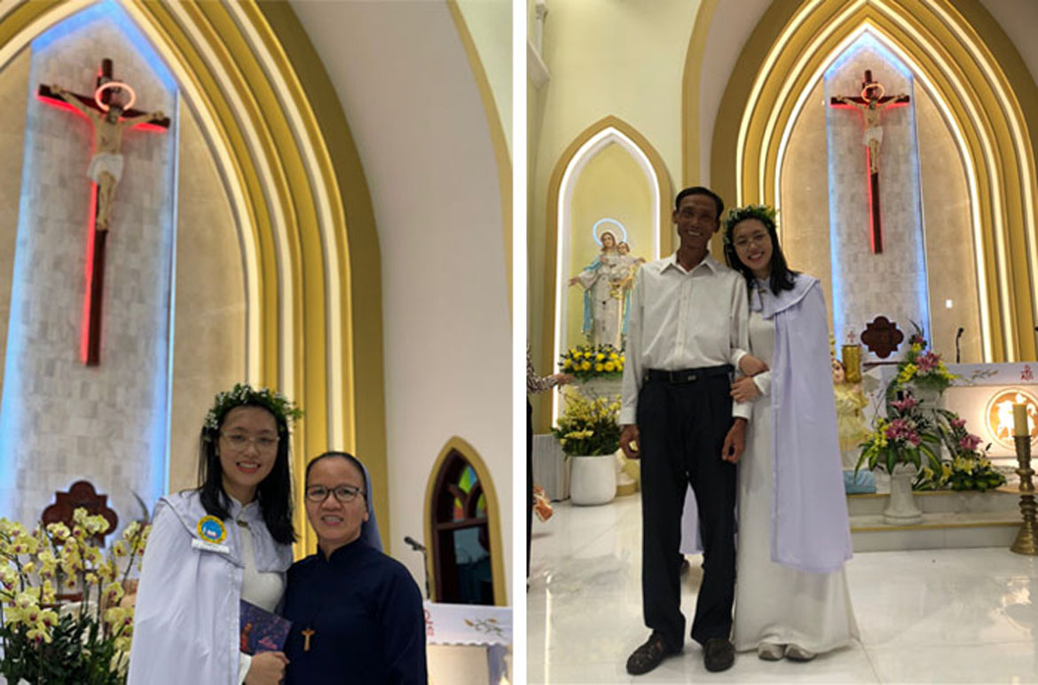 Từ đây em thuộc về Chúa, là con của Chúa trong lòng Giáo Hội. Cuối ngày hồng ân hôm đó, Đan đã chia sẻ “…từ hôm nay con đã chính thức trở thành con Chúa nên con vui lắm ạ, từ nay đi Lễ con đã có thể lên rước Lễ chứ không còn phải ngồi dưới nhìn mọi người nữa ạ. Con thật sự rất hạnh phúc luôn ạ. Sự hiện diện của Các Cha và các Sơ và mọi người hôm nay cũng là một món quà mà Chúa đã trao ban cho con, con biết ơn Người lắm. Con luôn tin Chúa luôn ở bên cạnh con, đồng hành cùng con trên mọi hành trình của con. Đã có lần con được thấy Chúa trong giấc mơ của con ạ. Con không biết đó có phải là mơ không. Mà hình ảnh của Người hiện trước mặt con rõ ràng lắm ạ. Ánh sáng hào quang của Người toả sáng cho con cảm giác con đang thấy Chúa thực chứ con không mơ…”