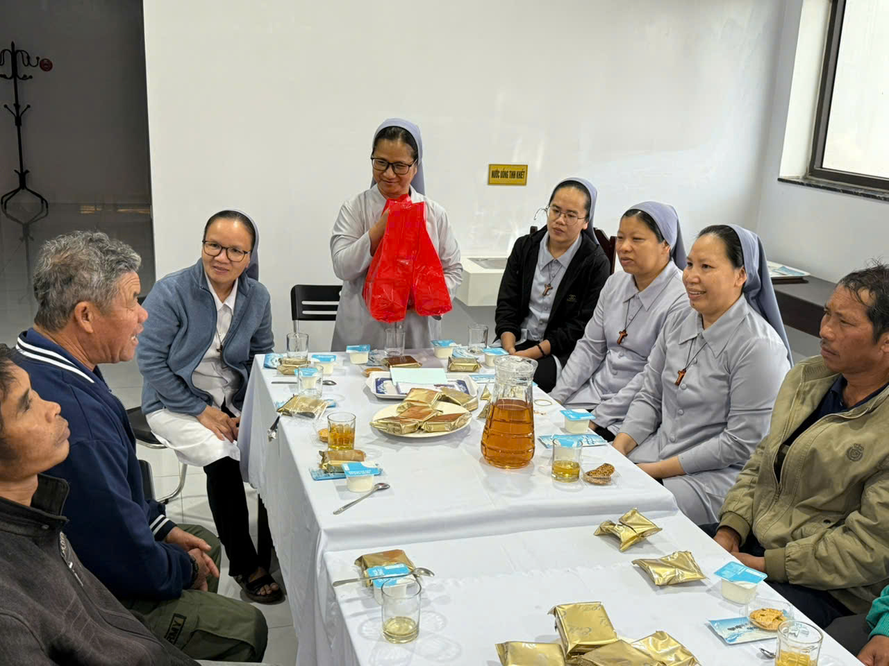 Trong dịp này, các anh em và quý nữ tu đã cùng quy tụ trước hang đá và tượng Đức Mẹ La Vang tại hội trường Phòng khám từ thiện Kim Long để đọc kinh và cầu nguyện. Những lời kinh được dâng lên như tâm tình tạ ơn và phó thác, quy tụ mọi người trong cùng một niềm hy vọng và tình hiệp thông.