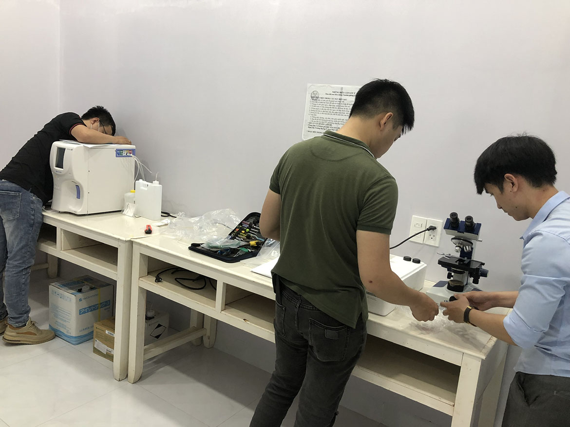 Các kỹ sư dành nhiều thời gian để lắp đặt và hướng dẫn sử dụng cho các kỷ thuật viên của phòng xét nghiệm.