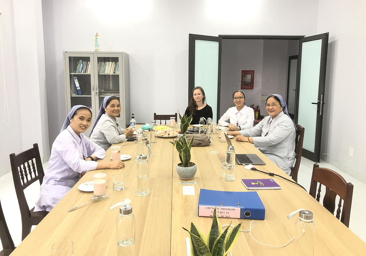 Sau thời gian tham quan phòng khám với cảm xúc hào hứng, thân thiện, Cô Gabriel đã cùng với quý chị em cùng trao đổi về các các hoạt động hợp tác giữa MISEREOR và phòng khám, giải đáp thắc mắc đồng thời trình bày những mong đợi cho kế hoạch tương lai.