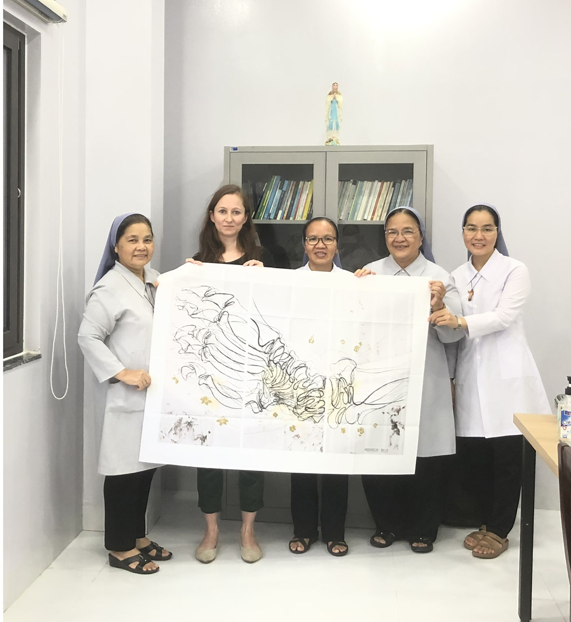 Quà tặng của MISEREOR trao gởi đến Phòng khám Từ thiện Kim Long là chiếc khăn voan với hình ảnh bàn chân bị nhiều vết thương, biểu tượng của “the MISEREOR Lenten Veil 2021-2022”