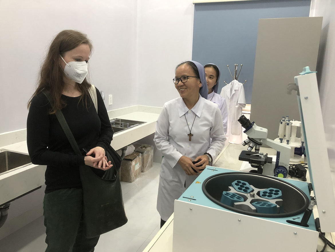 Điểm dừng chân cuối cùng là Nhà nguyện của Phòng khám. Tại đây, chị Phó Tổng Phụ trách với ngôn ngữ tiếng Pháp sẵn có, chị đã giới thiệu về các sinh hoạt thiêng liêng của chị em đang trực tiếp phục vụ Phòng khám. Chị Phó Tổng đã dâng lời Tạ ơn Chúa, cám ơn quý Ân nhân và cầu nguyện đặc biệt cho Tổ chức MISEREOR cũng như quý nhân viên của Hội.