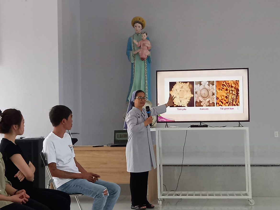 Những giây phút giải lao là cơ hội để câu chuyện được tiếp nối và đan xen hơn, nhờ vậy mà hoạt động tiếp theo được tiếp thu cách sinh động hơn. Với hoạt động “Phân biệt các khái niệm: Tư vấn, cố vấn, tham vấn” đã làm cho các thành viên có thêm kiến thức cho việc đến với người khác. Tuy nhiên, tầm quan trọng mà Sr. Trà Ảnh muốn nhấn mạnh trong bài hướng dẫn này là “mục tiêu của việc tham vấn”. Điều này đòi hỏi nơi mỗi người sự hiểu biết, tự nhận thức, khả năng đón nhận bản thân cũng như khả năng nắm bắn, giải quyết vấn đề. Không chỉ có lý thuyết nhưng Sr. Trà Ảnh còn đặt ra những tình huống, những thắc mắc để mỗi người nhìn nhận, và nêu lên cách đón nhận và giải quyết. Bên cạnh đó, Soeur còn trao gởi tới các thành viên “những nguyên tắc đạo đức trong khi tham vấn như Công bằng, cẩn mật..”. Điều này đỏi hỏi nơi mỗi tình nguyện viên phải có được sự thấu cảm, chân thành, kính trọng, nồng nhiệt. Ngoài ra Soeur cũng hướng dẫn các tiến trình của một buổi tham vấn qua các giai đoạn. Và như Đức Thánh Cha Phanxicô đã nói muốn hiệp hành, muốn cùng nhau bước đi mỗi thành viên cần “kỹ năng lắng nghe, kỹ năng đặt câu hỏi, kỹ năng quan sát, diễn giải và phản hồi” .