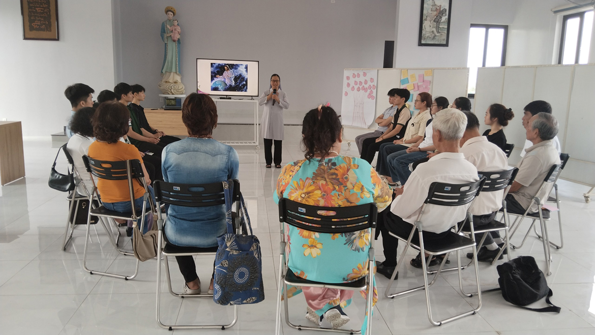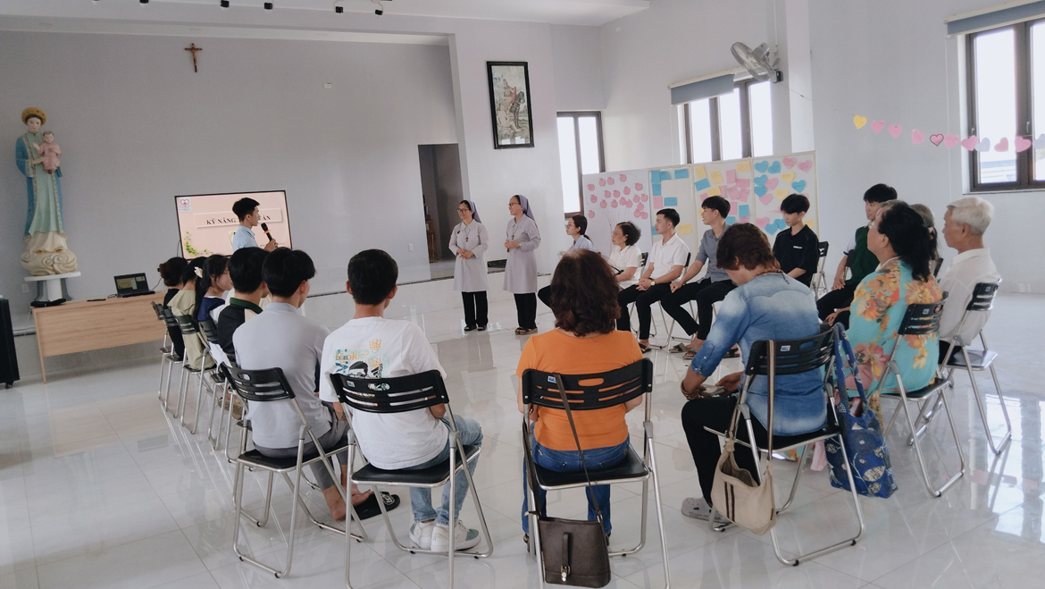 Khi những tia sáng mặt trời đầu tiên ló rạng, Phòng Khám đã mở cửa để đón tiếp các tình nguyện viên và các em sinh viên đến tham dự buổi tập huấn “Kỹ năng tham vấn”, do Sr Maria Trà Thị Ảnh hướng dẫn. Theo đúng chương trình các tình nguyện viên đã có mặt lúc 7h30 để gặp gỡ chào nhau và chia sẻ câu chuyện đầu ngày. Sau những giây phút thinh lặng cầu xin ơn Chúa Thánh Thần thánh hóa và chúc lành thì Sr Trà Ảnh đã bước vào chương trình với trò chơi khởi động buổi sáng.