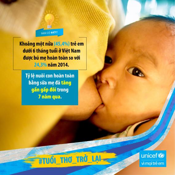 Tỷ lệ nuôi con hoàn toàn bằng sữa mẹ đã tăng gấp đôi trong vòng 7 năm qua. Khoảng một nửa (45,4%) trẻ em dưới 6 tháng tuổi bú mẹ hoàn toàn so với 24,3% trong năm 2014.