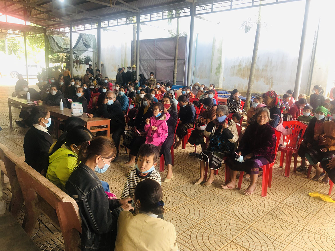 Từ sớm, bà con Vân Kiều từ những em bé đang còn bú sữa mẹ đến các cụ già lom khom đã tề tựu tại khuôn viên Thánh Đường Giáo xứ Khe Sanh. Tay cầm tấm phiếu trên tay. Rất trật tự, yên lặng và nề nếp, cùng với những đôi mắt trông ngóng chờ đợi. Dịp này Giáo xứ đã tổ chức rất hợp lý và chu đáo: có nơi để tiếp nhận ghi danh, nơi chờ đợi, nơi bác sĩ thăm khám, siêu âm và cấp thuốc, hướng dẫn sử dụng thuốc…Một bầu khí chan hoà yêu thương và thân thiện.